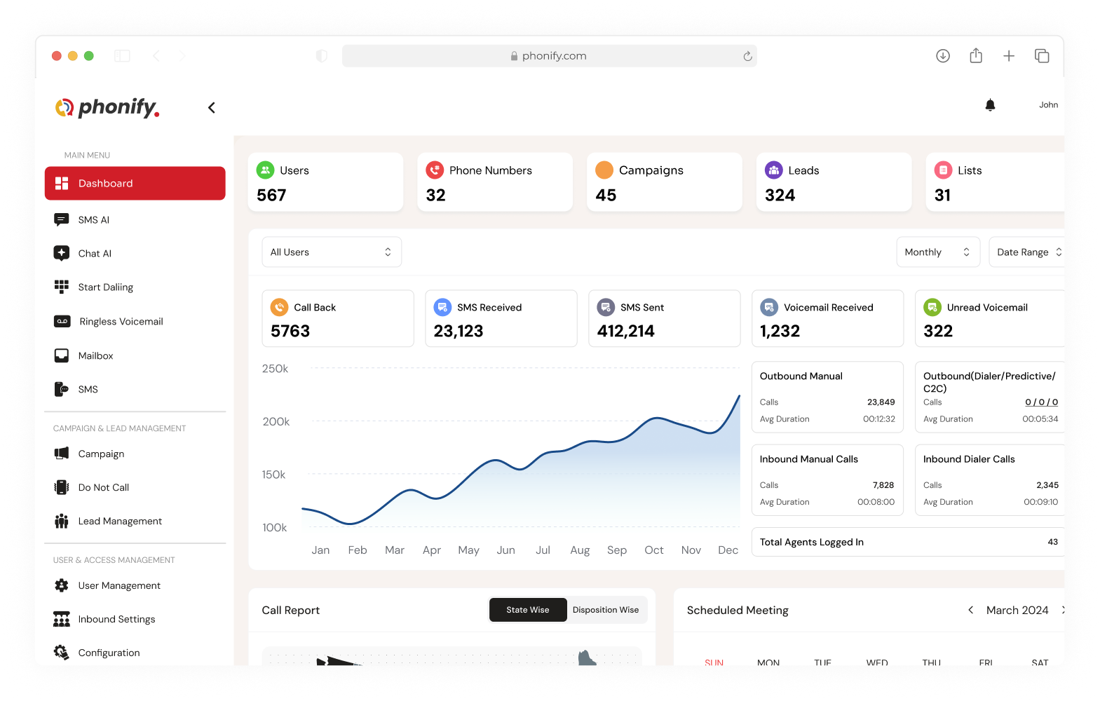 All from a single place: a unified dashboard for everything that matters. Run campaigns, make calls, send SMS or emails, automate voice messages, and more.